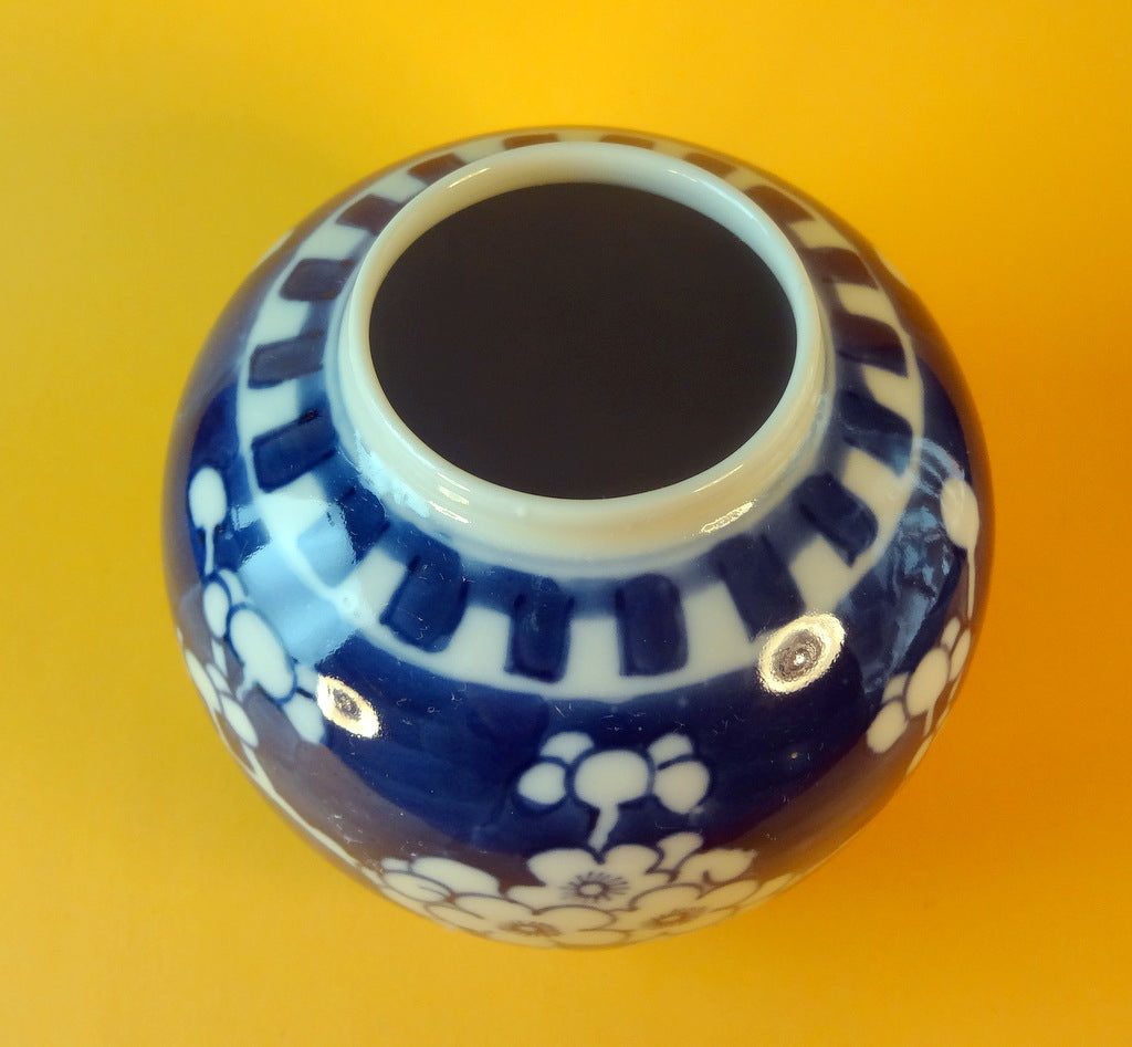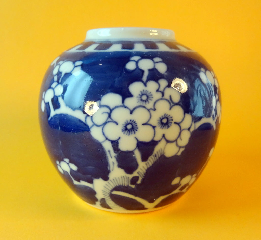 Beskrivelse: Kinesisk ingefær krukke (bojan) motiv af blomsterende pronus (kirsebær blomster)