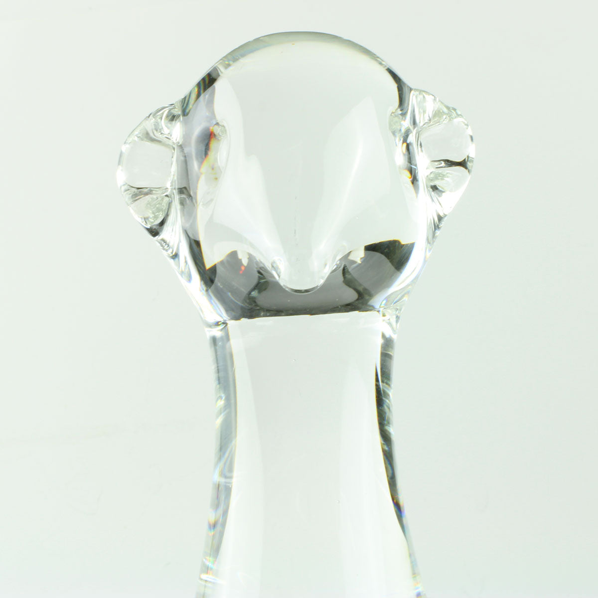 Beskrivelse: Fritte mundblæst af tung blykrystal antagelig på et svensk glasværk. Figuren er både teknisk og kunstnerisk af høj kvalitet. 1824 gr.