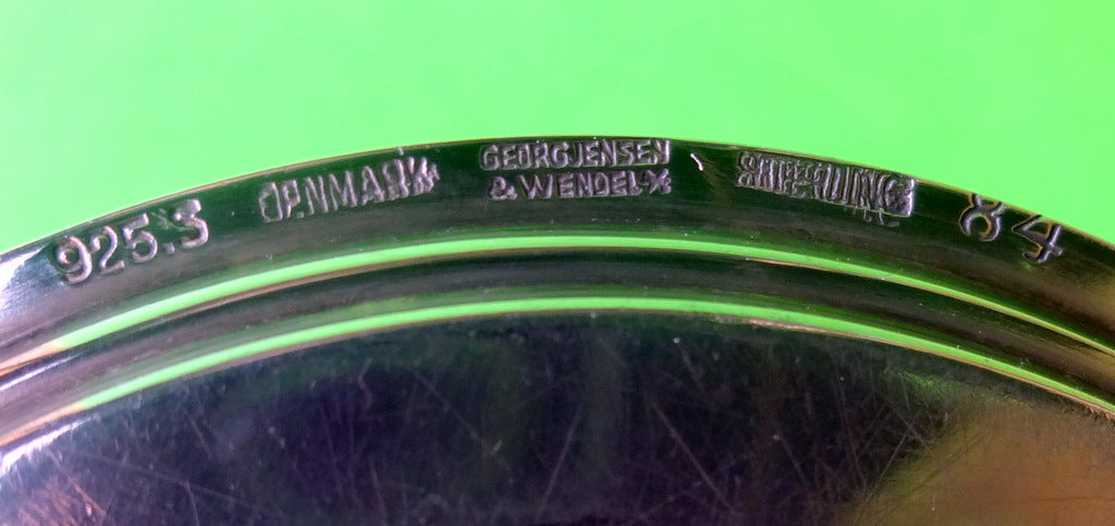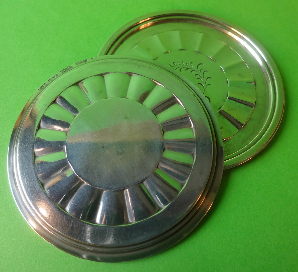 Beskrivelse: To flaskebakker i sterlingsølv, af Georg Jensen. Design nr. 84.