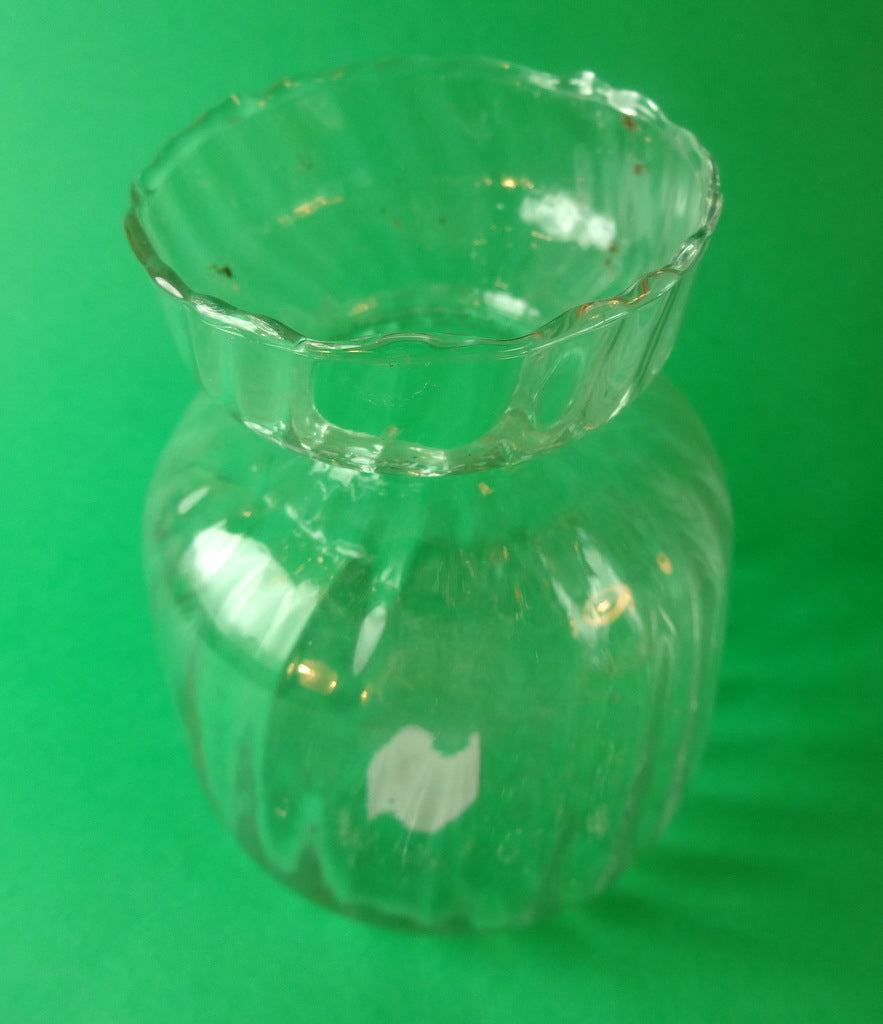 Beskrivelse: Optisk stribet hyacintglas i klart glasmasse.