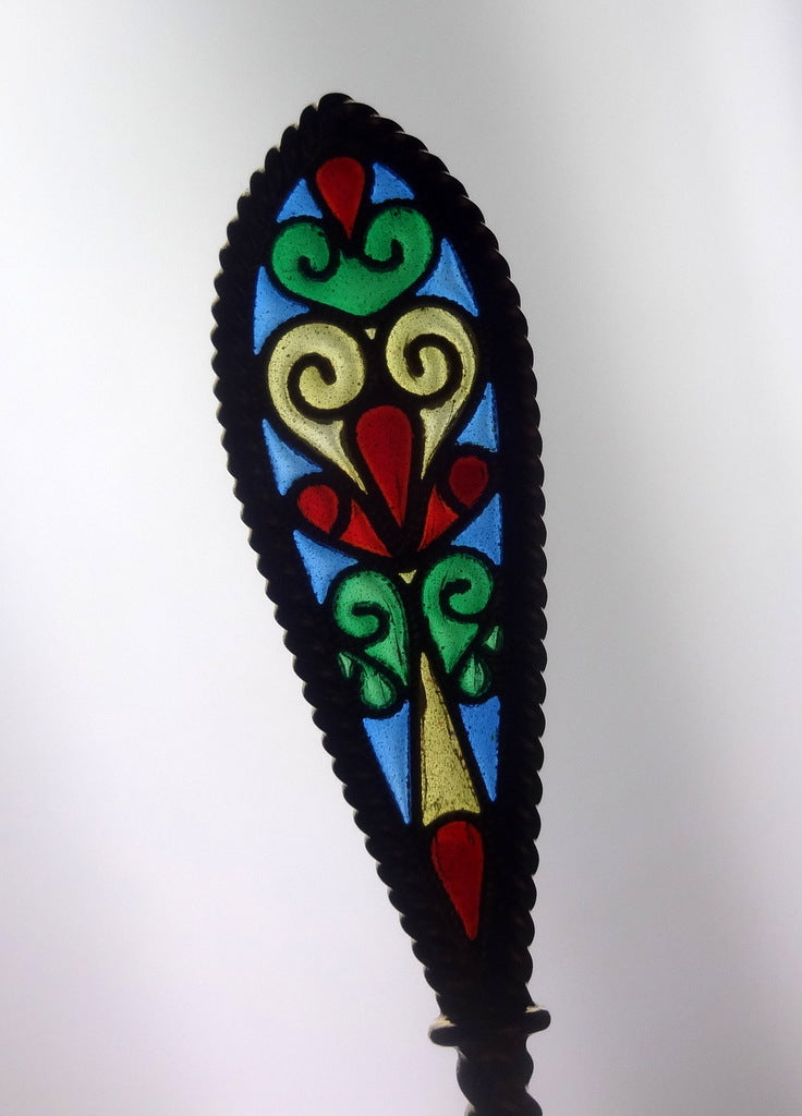 Beskrivelse: Plique a jour arbejde på ske i forgyldt sterlingsølv.