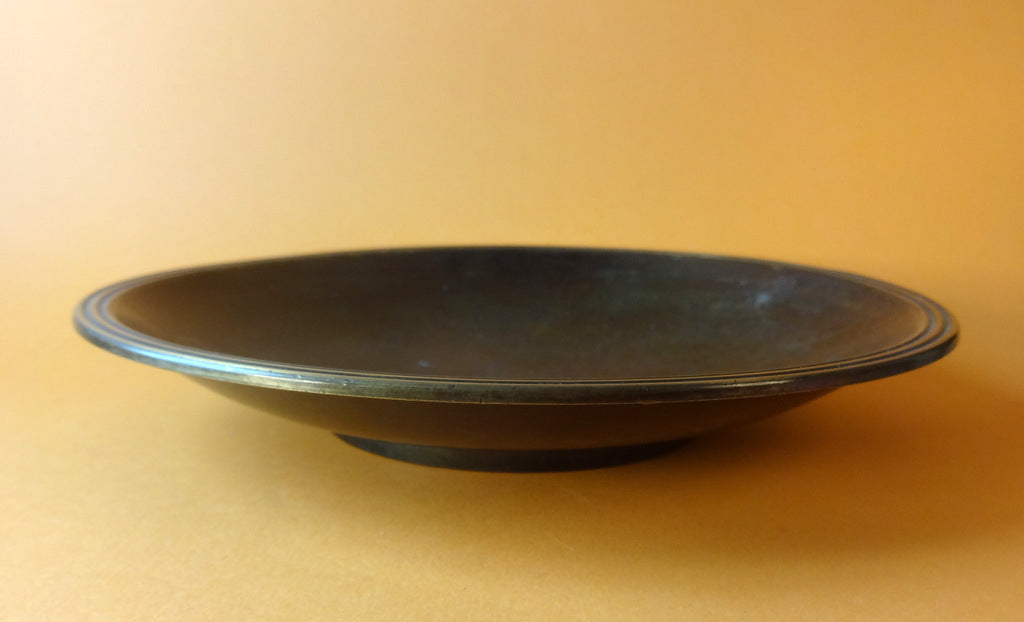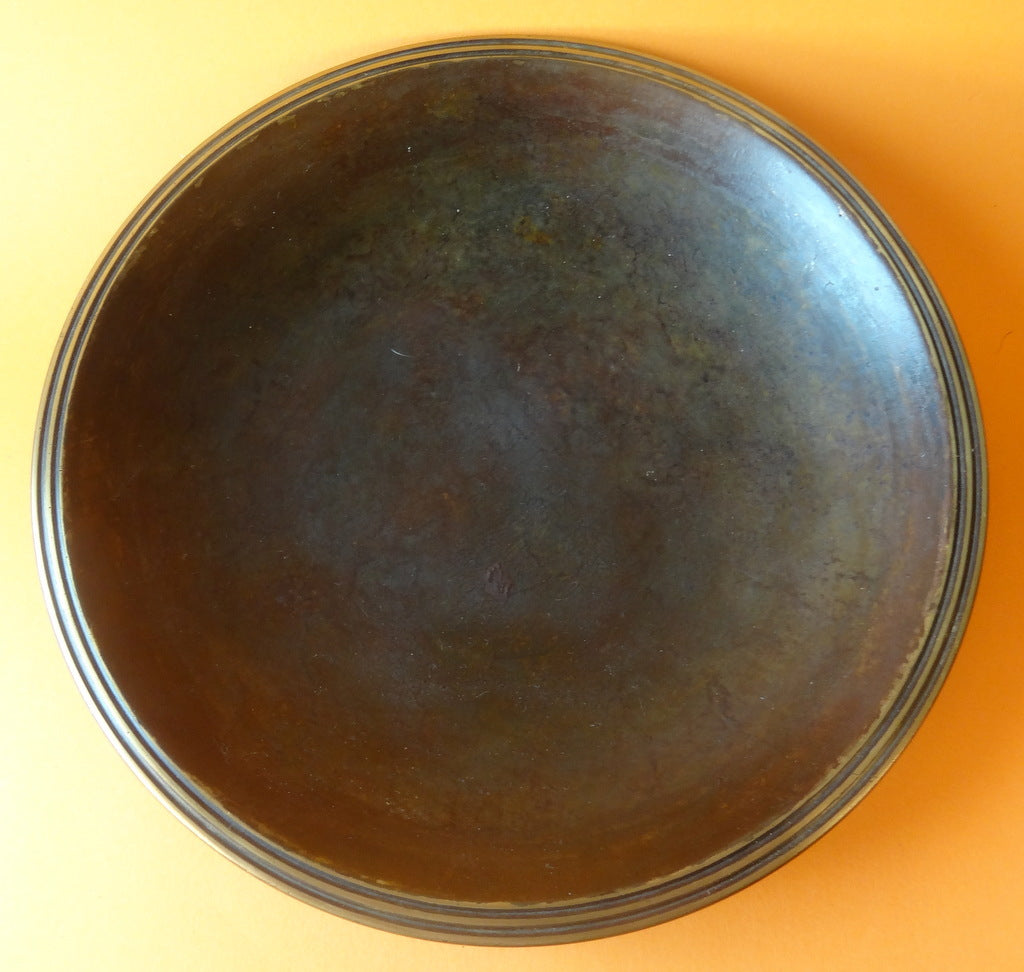 Beskrivelse: Art deco bronze skål, kraftig skål af patineret bronze, stemplet Just Andersen Danmark, nr. 1774.