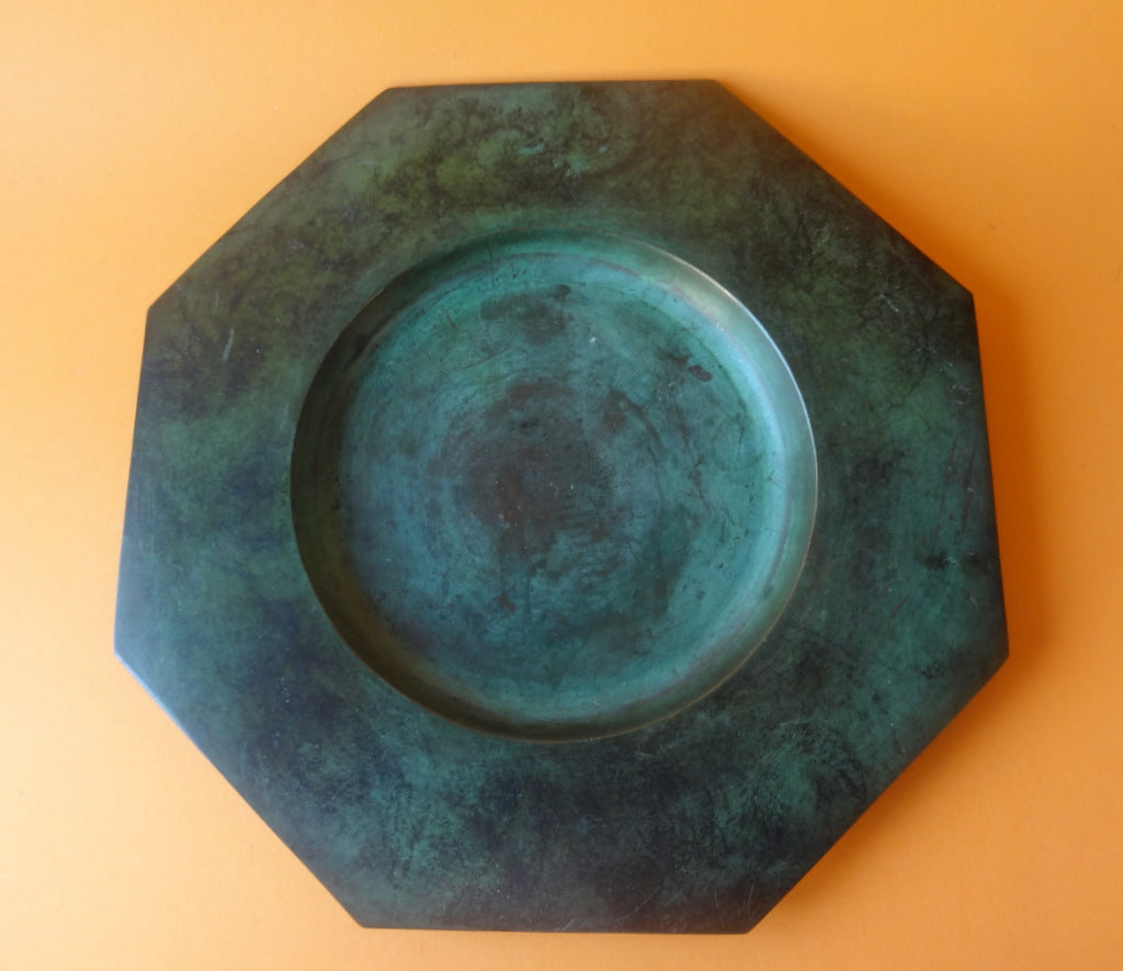 Beskrivelse: Art deco bronze skål, kraftig skål af patineret bronze, stemplet Just Andersen Danmark, nr. 1774.