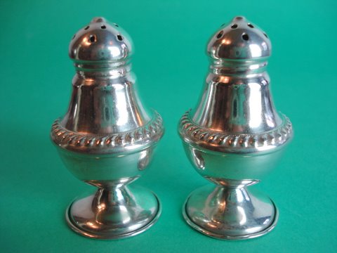 To peberbøsser ca. 1900. Højde ca. 6 cm