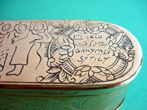Snustobaksdåse med diverse dekorationer, ca. 1780, Snustobaks-dåse med diverse dekorationer, ca. 1780