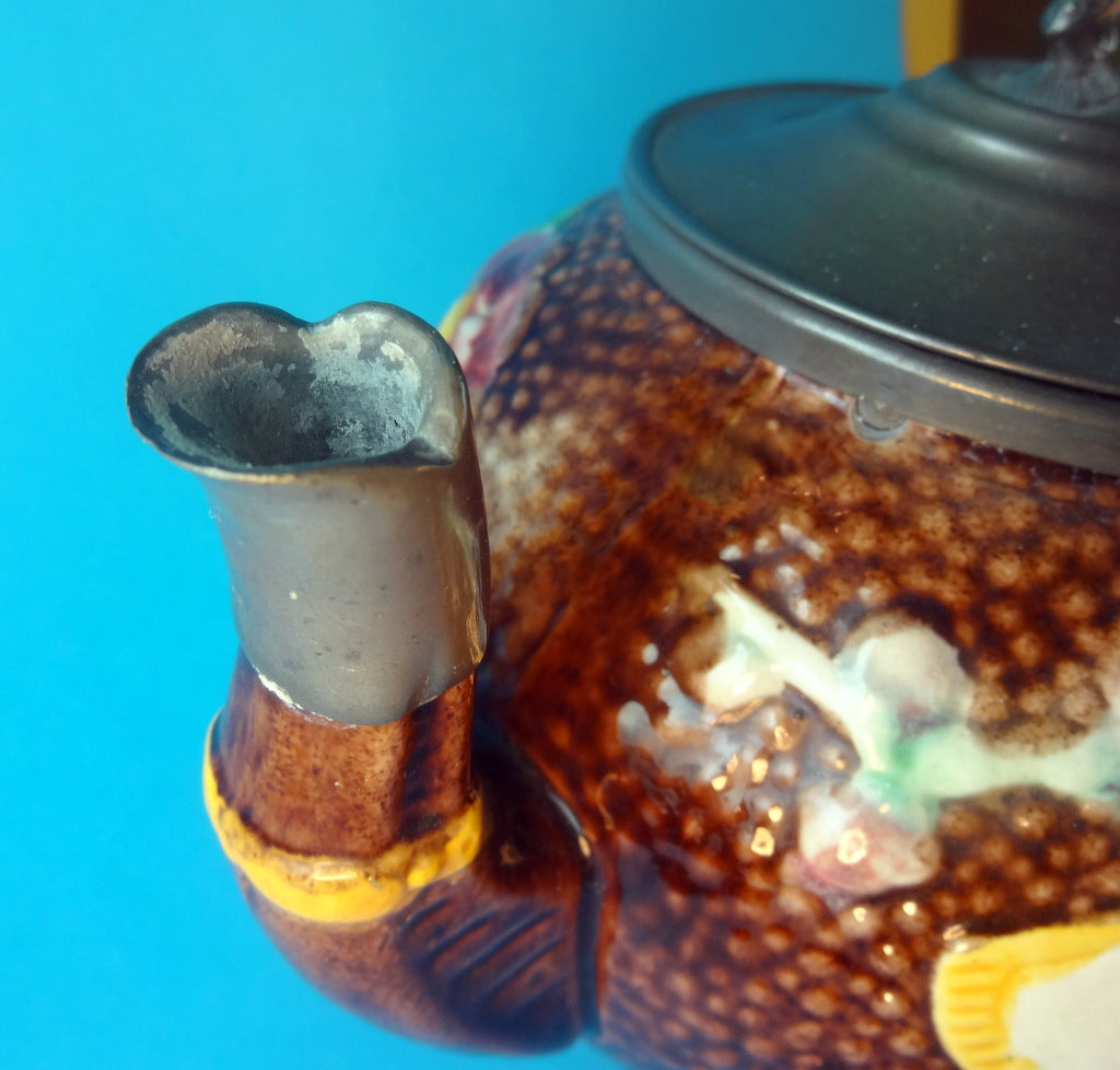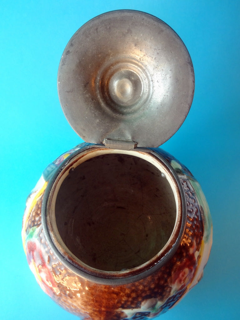 Beskrivelse: Orientalsk tekande, antagelig fremstillet i Kina, men eksporteret og monteret med tin i England.