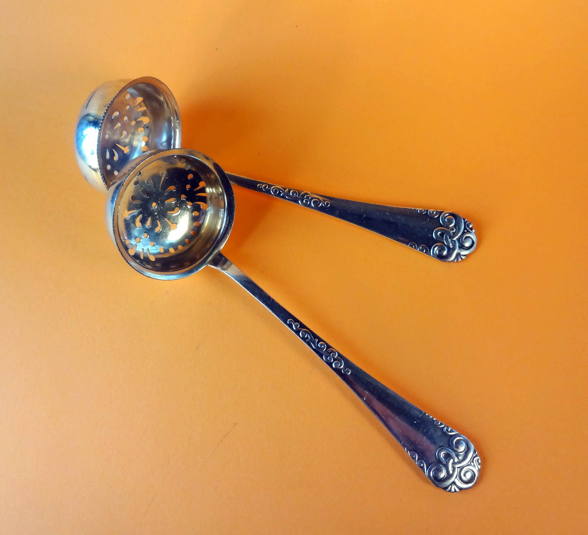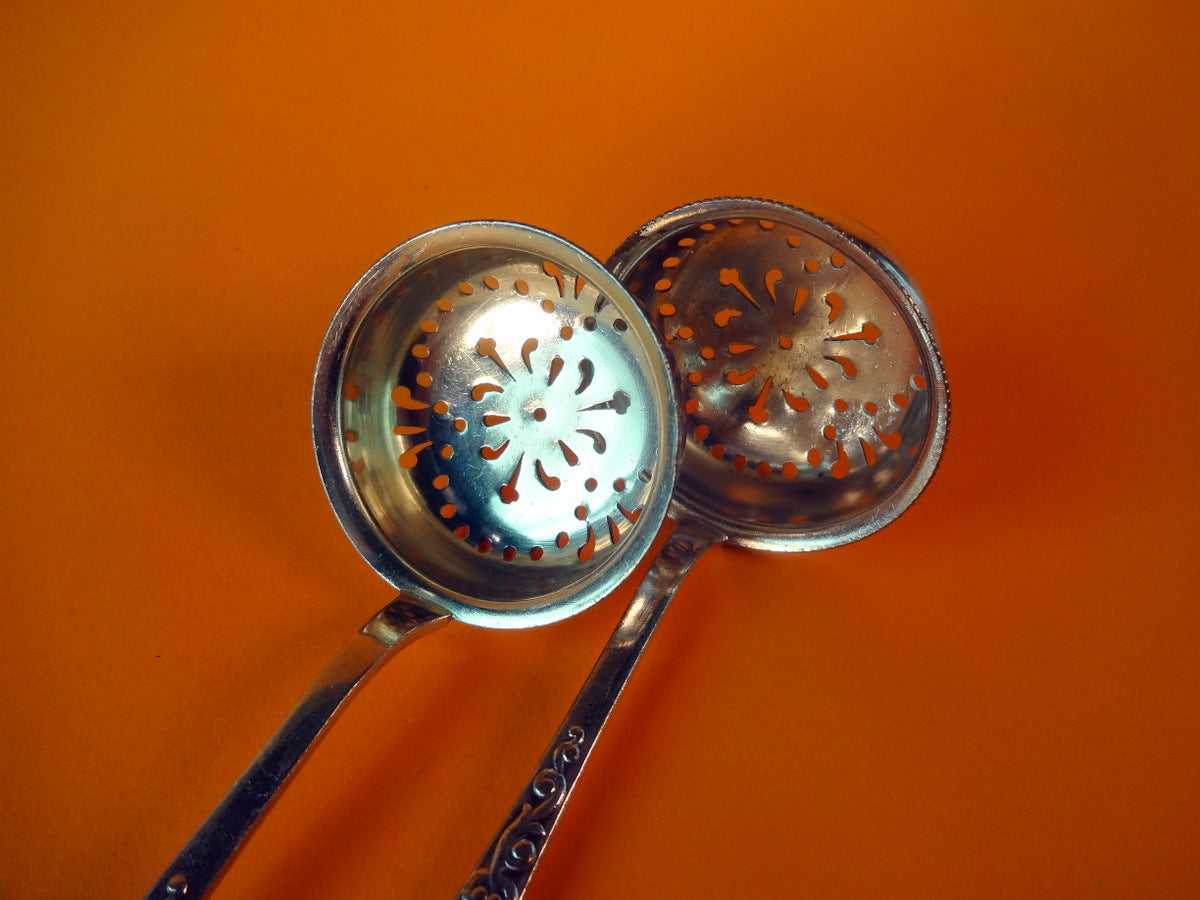 Beskrivelse: To ens strøskeer af sølvplet.