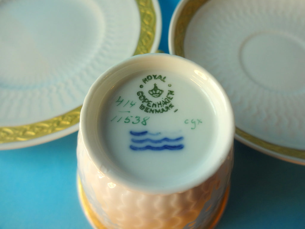 Beskrivelse: Kaffekop, underkop og siddetallerken, af vifteguld. OBS tre sæt haves.